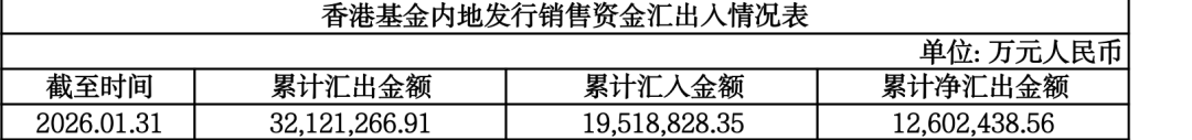 【导读】新一批香港互认基金获批 中国基金报记者获悉,摩根亚洲股票高息基金、富达环球投资基金——香港债券基金、华夏精选人民币投资级别收益基金、太平大中华新动力股票基金等 香港互认基金获批。这也是《香港互认基金管理规定》自2025年1月1日实施后获批的新一批互认基金。 新规后最新一批 香港互认基金是指在港设立、运作和公开销售,并经中国证监会注册在内地公开销售的单位信托、互惠基金或者其他形式的集体投资计划。 2015年5月22日,中国证监会与香港证监会就开展内地与香港基金互认工作正式签署《关于内地与香港基金互认安排的监管合作备忘录》。开闸10年多以 来,基金互认机制发展势头向好。 国家外汇管理局的数据显示,截至2026年1月底,香港基金内地发行销售资金累计净汇出金额约为1260.24亿元,连续6个月位于1200亿元之上。 | | | 香港基金内地发行销售资金汇出入情况表 | | | --- | --- | --- | --- | | | | | 单位: 万元人民币 | | 截至时间 | 累计汇出金额 | 累计汇人金额 | 累计净汇出金额 | | 2026.01.31 | 32,121,266.91 | 19,518 ...