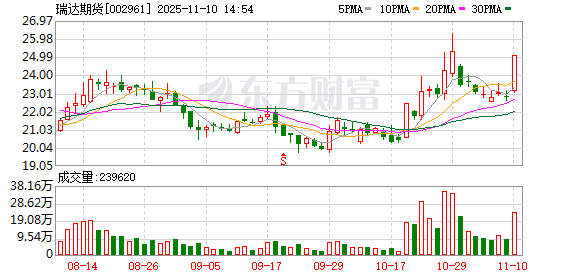 瑞达期货(002961)11月10日主力资金净买入1.42亿元