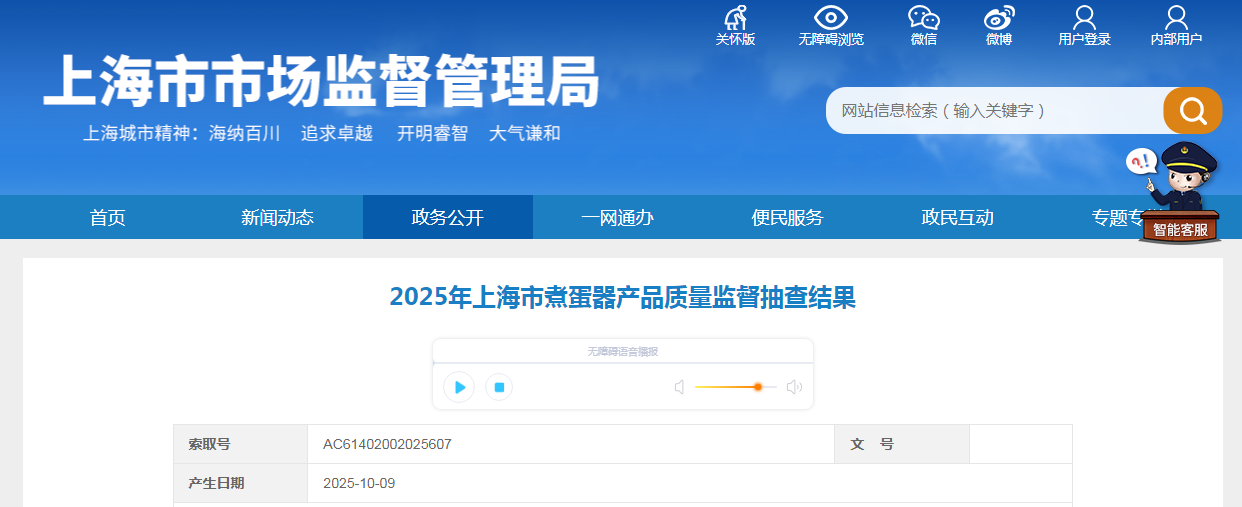 2025年上海市煮蛋器产品质量监督抽查结果公布