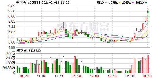 天下秀成交额创2025年1月20日以来新高