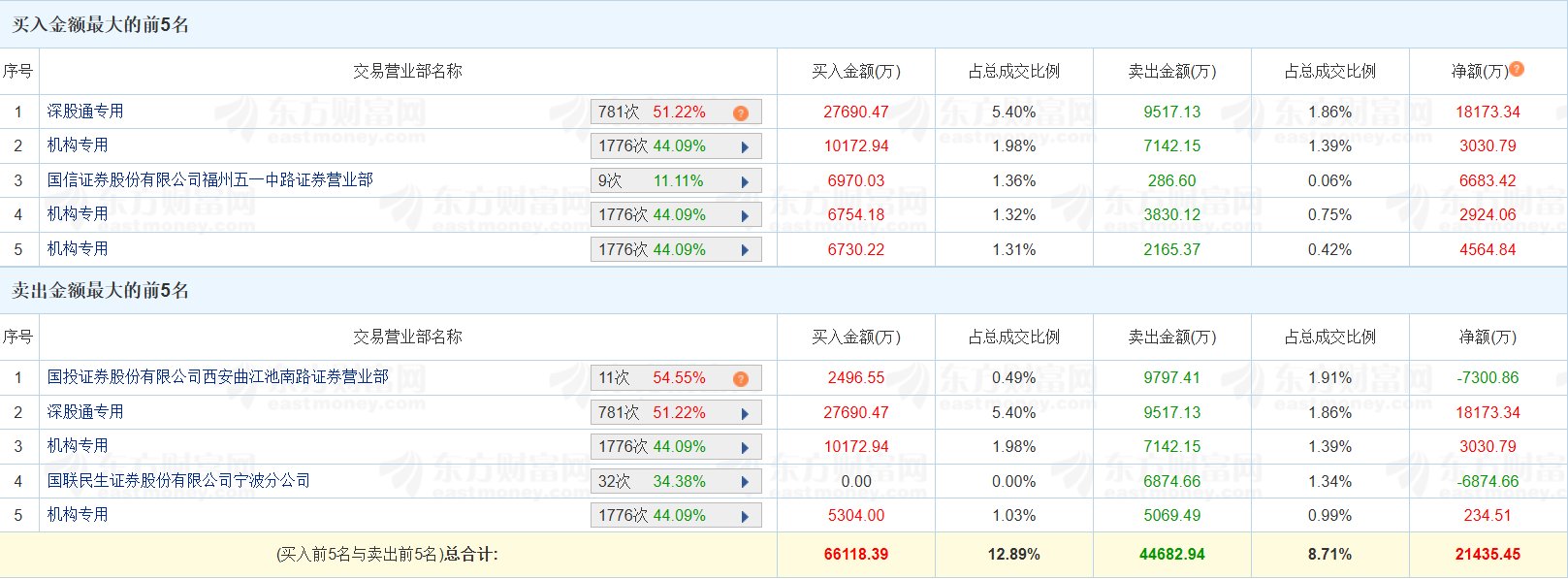 格隆汇1月13日|天龙集团(300063.SZ)今日20CM涨停三连板,换手率52.81%,成交额51.29亿元。龙虎榜数据显示,深股通买入2.77亿元,卖出9517万元, 净买入1.82亿元;四家机构买入2.9亿元,卖出1.82亿元,净买入1.08亿元;游资"曲江池"位列卖一席位,净卖出7301万元;"深南东路"位列卖四席位,净卖 出6875万元。上榜席位合计净买入2.14亿元。(格隆汇) | 序号 | 交易营业部名称 | | 买入金额(万) | 占总成交比例 | | --- | --- | --- | --- | --- | | | 国投证券股份有限公司西安曲江池南路证券营业部 | 11次 54.55% 2 | 2496.55 | 0.49% | | 2 | Bastmoney.com 深股通专用 | 781次 51.22% A | 27690.47 | 5.40% | | 3 | 机构专用 | 1776次 44.09% A | 10172.94 | 1.98% | | 4 | 国联民生证券股份有限公司宁波分公司 | 32次 34.38% A | 0.00 | 0.00% | | 5 | 机构专用 | 1 ...