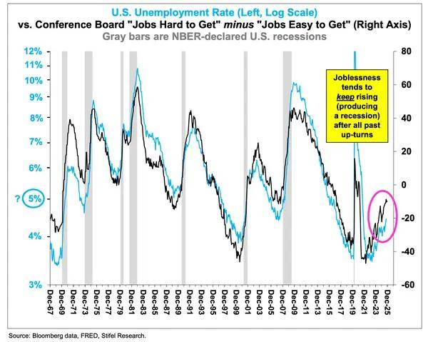 "市盈率本身并不重要……直到它成为唯一重要的指标,而标准普尔500指数又太贵了," Bannister补充 道。 如果熊市真的到来,投机性最强的资产将率先下跌,随后是整体市场。Bannister追踪的七只高波动性股 票——包括Palantir、Strategy和GameStop——被用作投机偏好的指标,这些股票在过去几个月里大幅下 跌。 智通财经12月13日讯(编辑 黄君芝)美国知名投行Stifel的首席股票策略师Barry Bannister最新预计,如 果美国经济在2026年保持良好,标普500指数将上涨9%。但一旦经济衰退来袭,投资者应该做好基准指 数迅速下跌20%的准备。 "美联储正在放松政策,但衰退风险(标准普尔500指数快速下跌20%)并非微不足道,"他在最新报告 中写道。 不过值得注意的是,经济衰退既非Stifel,也并非华尔街任何一家大行对明年的基本预期。而且,美联 储也刚刚上调了对2026年的经济增长预测,Stifel认为经济衰退发生的可能性约为25%。 但与此同时,Bannister也强调,如果经济出现问题,美国股市仍有可能经历一段艰难时期。 首先,他解释称,劳动力市场似乎有些不稳定,失业 ...