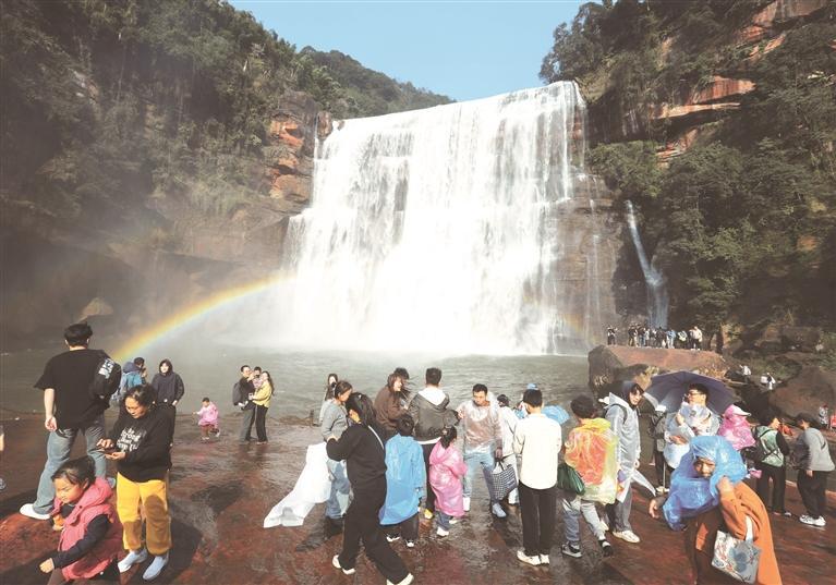 转自:贵州日报 春节假期,遵义市赤水丹霞旅游区大瀑布人气持续攀升。图为2月21日,游客在瀑布前游览。 王长育 摄 (影像贵州) ...