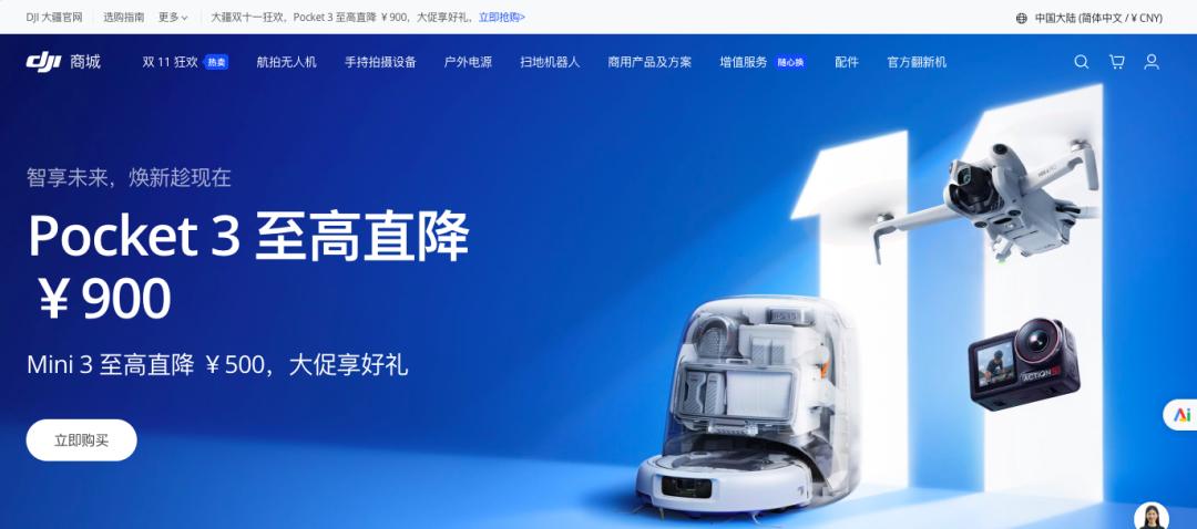 打工人们还没有焐热自己手里刚买的大疆Osmo Poceket3,就发现自己买贵了。 10月9日,国庆长假结束后第一天,大疆开始筹备"双11"大促。此次大促,包含运动相机、全景相机、入门航拍机等多款拍摄产品均大幅度降价,甚至8月 刚发布的扫地机器人和7月上市的全景相机也在其中。 大疆无人机Mini4 Pro直降1478元,运动相机Action 4降幅超950元,最热销的产品Osmo Poceket 3口袋云台相机最高降价幅度达到了900元。这款于2023年 10月上市的云台相机,累计销量已经超过1000万台,是不少人旅游出片神器。 手机之类的消费电子产品在更新换代时降价早已不是新鲜事,甚至新能源汽车领域也屡见不鲜,但对于大疆而言,这样的降价幅度超出了消费者的心理预 期。 Tech星球查询大疆官网发现,大疆只针对通过官网购买的用户提供了明确的价保政策。从10月9日至11月14日期间在DJI大疆商城支付的订单,自支付日起 价保至11月20日。而这个时间节点恰好是"双11"从开始到结束,但对于此前购买的用户并无明确说明。 而其他渠道,都需要联系客服或者销售人员处理价保。同时,大疆也表明因线下门店和线上平台会根据不同的 ...