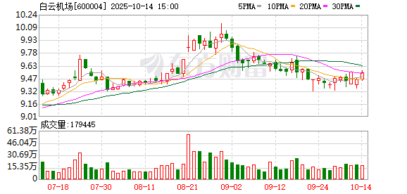 股市必读:白云机场(600004)10月14日主力资金净流入261.15万元,占总成交额1.53%