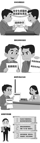 约定旧车回购款直接抵扣新车车款 商报讯 (通讯员 杭小消 记者 毛雨希 制图 实习生 严中华)消费者李先生于2023年2月与某科技有限公 司签订了一份《某车整车保值回购意向协议》(以下简称"《回购协议》")。"回购协议中约定,我 2022年购买的汽车三年后商家应当按照车价七折回购,车款用于支付新车尾款。但商家回购时,我发现 《回购协议》中新增了条款,需要我先垫付购车资金后商家回购旧车,这导致旧车可能无法顺利评估回 购,我要求商家按照原来的约定履行。"于是,李先生向与本报维权版面联动的杭州市消费者权益保护 委员会(以下简称"杭州市消保委")反映了此事。 准备回购时条款却变更了 杭州市消保委发布消费提示 (一)消费者务必要求商家提供书面《保值回购协议》,重点核查并标注核心内容,包括但不限于"回 购触发条件""回购流程""款项结算方式""违约责任",避免协议存在"模糊表述""关键条款缺失"的问题。 侵犯了消费者的合法权益 杭州市消保委工作人员表示,根据《中华人民共和国民法典》第五百零九条规定,合同签订后,当事人 应当按照约定全面履行自己的义务。《中华人民共和国消费者权益保护法》第十条规定,消费者享有公 平交易权,不 ...