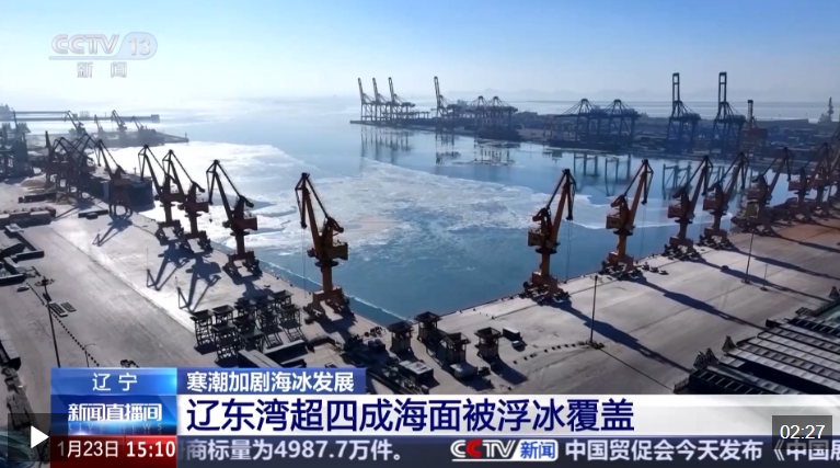 受近日寒潮天气影响,渤海辽东湾的海冰进一步加重,目前,辽东湾超过四成的海面被浮冰覆盖。严重冰期中的海冰给辽东湾海域的生产生活带来了怎样的 影响,一起来看记者从现场发回的报道。 总台记者 季熠非:辽宁省锦州市锦州港是目前辽东湾海冰分布最为集中的区域之一。从上周末开始,辽宁迎来强冷空气,辽东湾的海冰也是在这样持续多 日的寒潮中迅速发展的。 总台记者 季熠非:从自然资源部北海预报减灾中心提供的最新卫星遥感解译图来看,阴影部分是目前辽东湾海冰的分布范围,面积达到了12953平方公里, 浮冰距离海岸的最大外缘线达到58海里,也就是107公里以上,超过42%的辽东湾海面,现在被浮冰覆盖。 全力保障民生物资海上运输 作为辽东湾内的大港之一,锦州港2025年的吞吐总量达到1亿吨,其中粮食、煤炭等重要民生物资超过2100万吨。锦州港地理位置优越,黑、吉、辽三省以 及内蒙古自治区东部地区的很多粮食和煤炭,可以经过铁路和公路运输,就近到达锦州港,通过这里的海上航线向各地运输。 在锦州港粮食码头上,几条货船正在进行装载作业,它们通过岸上的门机和装船机,向船舱内装载玉米。 尽管天气非常寒冷,但装船各个环节之间的配合却是非常高效,一个小 ...