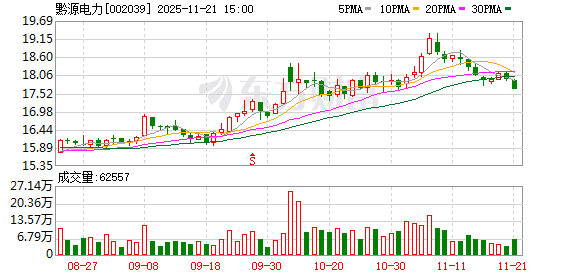 黔源电力11月21日披露,截至11月20日公司股东户数为17350户,较上期(11月10日)减少1180户,环 比降幅为6.37%。 证券时报·数据宝统计,截至发稿,黔源电力收盘价为17.63元,下跌1.67%,本期筹码集中以来股价累 计下跌4.96%。具体到各交易日,3次上涨,6次下跌。 公司发布的三季报数据显示,前三季公司共实现营业收入21.69亿元,同比增长47.99%,实现净利润 4.93亿元,同比增长85.74%,基本每股收益为1.1527元,加权平均净资产收益率11.89%。 机构评级来看,近一个月该股获1家机构买入评级。预计目标价最高的是华泰证券,11月1日华泰证券发 布的研报给予公司目标价23.76元。(数据宝) (文章来源:证券时报网) 融资融券数据显示,该股最新(11月20日)两融余额为3.05亿元,其中,融资余额为3.05亿元,本期筹 码集中以来融资余额合计减少2082.85万元,降幅为6.40%。 ...