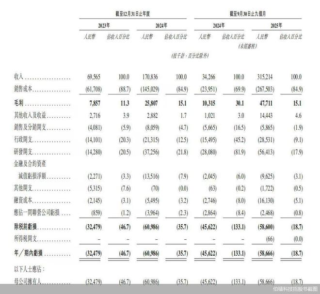 自动驾驶赛道又有一家公司奔赴资本市场。近日,上海伯镭智能科技股份有限公司(以下简称"伯镭科 技")正式递表港交所,营收从2023年的6956.5万元涨到2024年的1.71亿元,再增至2025年前9个月的 3.15亿元,同比增长超800%。按2024年出货量及营收计,伯镭科技是全球最大的纯电自动驾驶矿卡提 供商。 光鲜的增速背后是严重的客户依赖,2025年前9个月,单一最大客户贡献了高达65%的营收,前五大客 户营收占比97.7%。伯镭科技选择自主矿车品牌覆盖市场,通过产品结构升级推动平均售价上涨,试图 在亏损扩大的窄门中突围。绑定矿业巨头是伯镭科技起飞的推力,也是悬在头顶的达摩克利斯之剑,这 场关于自动驾驶商业化落地的实验,正随着招股书的递交进入高潮。 | | | 截至12月31日止年度 | | | | 截至9月30日止九個月 | | | | --- | --- | --- | --- | --- | --- | --- | --- | --- | | | 2023年 | | 2024年 | | 2024年 | | 2025年 | | | | 人民警 佔收入百分比 | | 人民参 估收入百分比 | | | ...