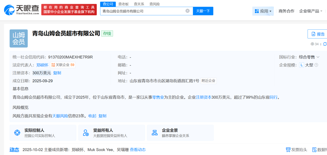 注册资本300万美元!山东首家山姆会员超市公司成立