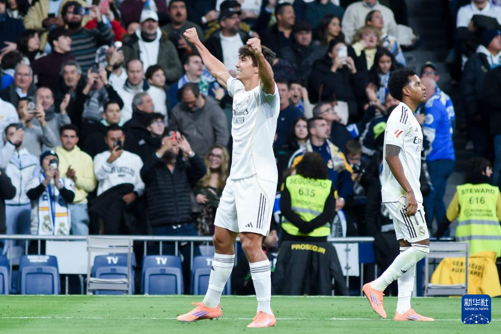 1月4日,在2025-2026赛季西班牙足球甲级联赛第18轮比赛中,皇家马德里队主场5比1战胜皇家贝蒂斯队。 1月4日,皇家马德里队球员贡萨洛·加西亚庆祝进球。新华社发(古斯塔沃·巴连特摄) 1月4日,皇家贝蒂斯队球员库乔·埃尔南德斯(中)在比赛中突破。新华社发(古斯塔沃·巴连特摄) 1月4日,皇家马德里队球员维尼修斯(左)和皇家贝蒂斯队球员安赫尔·奥尔帝斯拼抢。新华社发(古斯塔沃·巴连特摄) 1月4日,皇家贝蒂斯队球员库乔·埃尔南德斯庆祝进球。新华社发(古斯塔沃·巴连特摄) 1月4日,皇家马德里队球员维尼修斯(前右)和皇家贝蒂斯队球员安赫尔·奥尔帝斯拼抢。新华社发(古斯塔沃·巴连特摄) 责编:李磊、王瑞景 1月4日,皇家马德里队球员维尼修斯(左)和皇家贝蒂斯队球员安赫尔·奥尔帝斯在比赛中拼抢。新华社发(古斯塔沃·巴连特摄) 1月4日,皇家马德里队球员庆祝进球。新华社发(古斯塔沃·巴连特摄) 1月4日,皇家马德里队球员阿尔瓦罗·卡雷拉斯(右)和皇家贝蒂斯队球员安赫尔·奥尔帝斯拼抢。新华社发(古斯塔沃·巴连特摄) ...