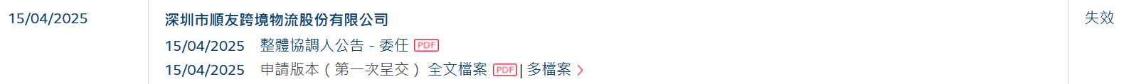 智通财经APP获悉,深圳市顺友跨境物流股份有限公司(以下简称为:顺友物流)于4月15日所递交的港股招股书满6个月,于10月15日失效,递表时中信建投 国际为其独家保荐人。 据招股书,该公司是资深的跨境电商物流服务提供商,通过该公司在中国内地的根基及跨境物流网络赋能跨境电商平台及跨境电商卖家。该公司成立于2008 年,致力于提供一站式跨境物流服务,拥有庞大的物流网络、阶梯式定价、多种配送时间选项及广泛的可运输物品覆盖面。该公司扎根于珠江三角洲地区 (中国内地最具活力的跨境电商地区之一),并已于中国内地广东省深圳市、广州市及东莞市,浙江省义乌市及宁波市,及江苏省苏州市,以及中国香港及美 国开展业务。 ...