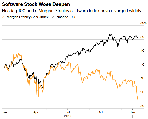 机构称“没有理由持有”!美股软件股陷入“AI焦虑”,板块估值跌至多年低位