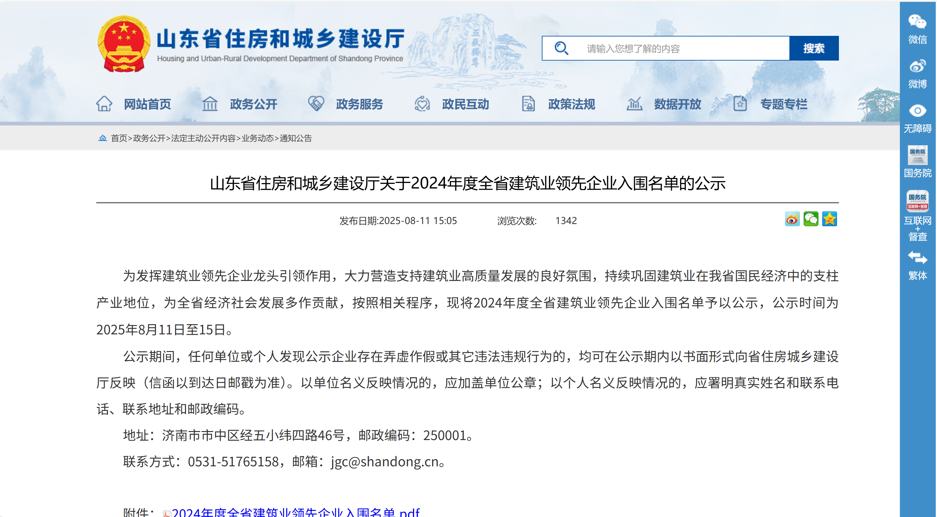 山东2024年度全省建筑业领先企业正公示,这50家企业入围