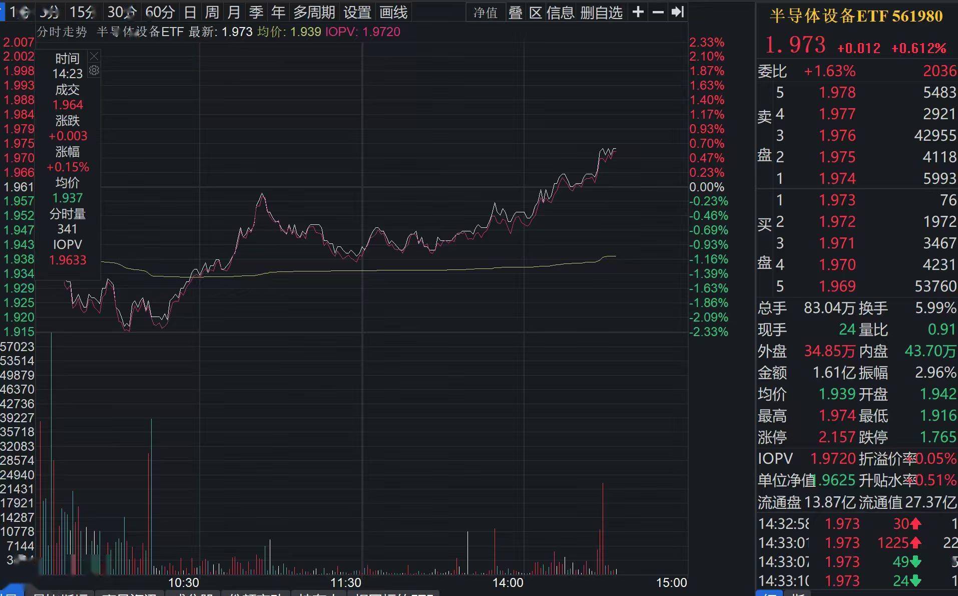 半导体设备ETF(561980)午后探底回升涨0.61%,多重变局下自主可控产业显韧性