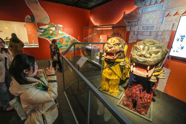 狮头由硬质木料制成, 头部施以彩漆, 额头宽大饱满、眼睛炯炯有神, "幡鼓动幽燕——京津冀庙会文化展" "幡鼓齐动十三档" 是老北京民间花会"武会"中 最著名的,已被列为 北京市级非遗代表性项目。 其包括开路、五虎棍、 秧歌(高跷)、中幡、 舞狮、双石、石锁、 杠子、花坛、吵子、 杠箱、天平和胯鼓13个行当, 表演时载歌载舞,一招一式尽显功底。 展品中,一对高达180厘米的 舞狮道具据推测诞生于 明晚期至清早期, ■展期:至4月5日 ■地点:首都博物馆地下一层A厅 ■票价:免费 保存完好,非常难得。 面颊装饰火焰纹,颈部悬挂铜铃, 来源:北京日报客户端 身披浓密鬃毛,造型威武雄壮。 ...