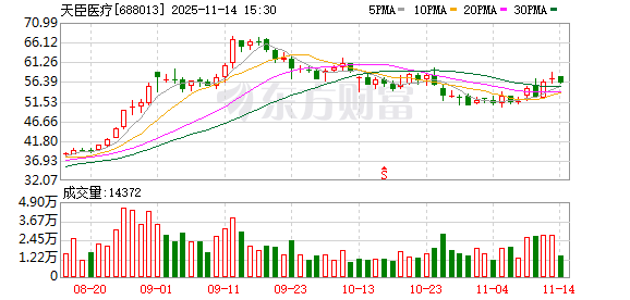 股票行情快报:天臣医疗(688013)11月14日主力资金净买入409.97万元