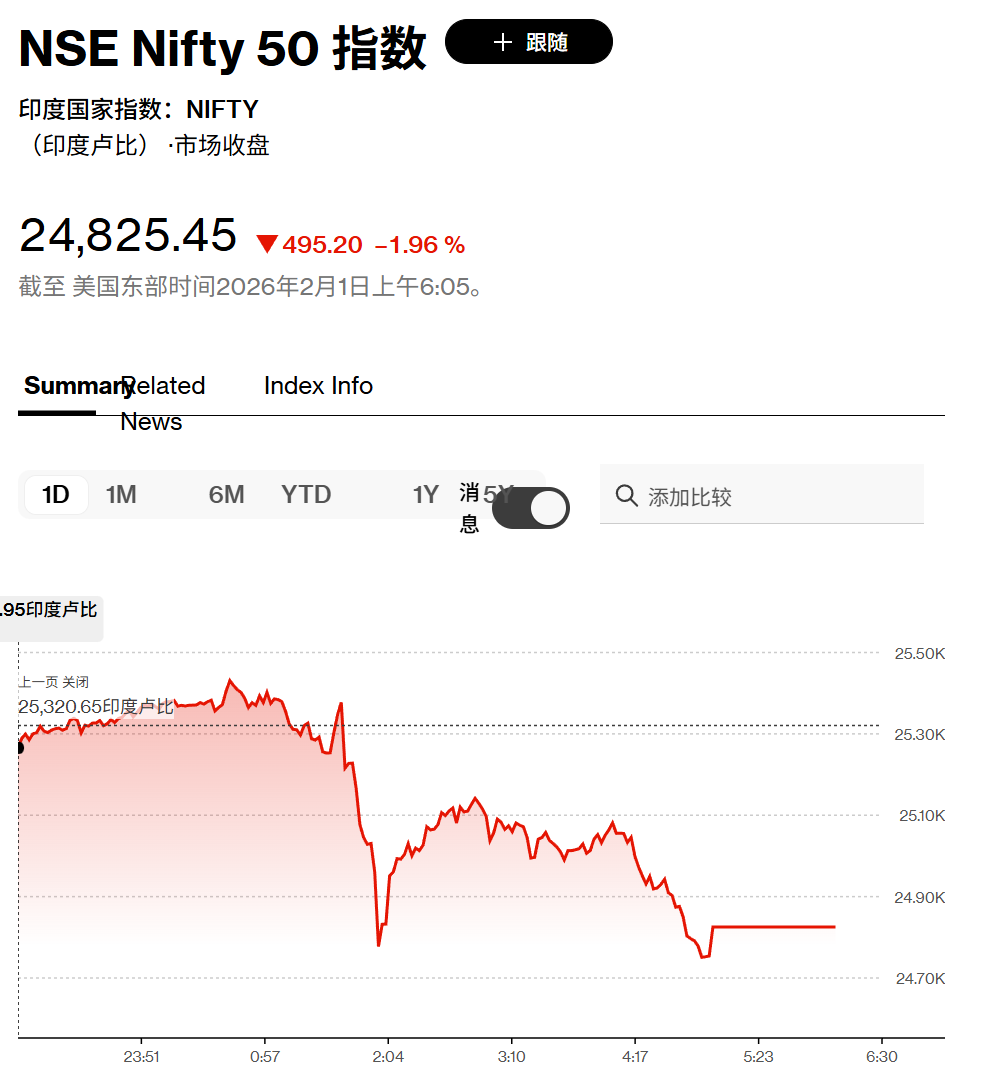 大家好,这个周末,很不平静。先是黄金白银暴跌,紧接着比特币也在暴跌。到了周日,印度、沙特股市也在暴跌。 印度暴跌 2月1日,印度股市全线大跌,NSE Nifty 50指数下挫约2%,创下自2020年以来"预算日"最大跌幅。 印度为什么周日股市还要开盘?原来是印度政府2月1日(周日)公布2026-27财年年度预算案,印度股市周日为预算案举行特别交易时段。 孟买指数大跌2%。 印度第二大证券交易所——孟买交易所,股价暴跌近8%。 消息面上,印度政府表示计划提高股票衍生品交易税,进一步加码遏制散户投机活动的举措。 政府在周日向议会提交的预算案中提议,将股票期货的证券交易税(STT)从0.02%上调至0.05%。期权方面,无论是期权权利金(premium)还是期权行 权环节的税率,都将提高至0.15%。这一消息引发股市快速下跌。 此举显示出印度在散户交易者涌入后,决心抑制投机交易。由于按合约数量计的交易规模激增,印度已成为全球此类产品最活跃的市场。监管机构在 2024年底已推出多项限制措施,其中包括将每家交易所限制为仅能推出一份每周指数期权合约。 阿迪亚·比拉太阳人寿资产管理公司董事总经理A. Balasubrama ...