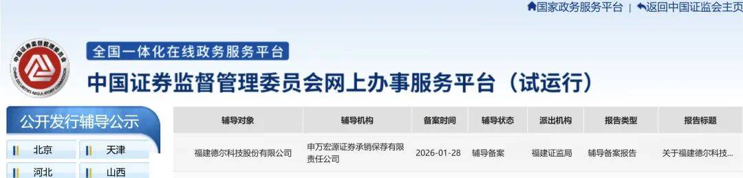 尽管此前IPO因业绩波动、股权争议等问题受阻,但此次重启A股IPO上市辅导,凸显出福建德尔科技对企业经营业绩稳步快速增长、未来发展态势持续向 好的坚实底气和信心。 在当前国家推动传统产业转型升级、大力发展新质生产力的背景下,福建德尔科技重启IPO不仅关乎企业自身发展未来,更承载着国家层面对科技型企业 通过资本市场做优、做强、做大高端半导体精细化工产业的期待。 中国证券监督管理委员会网上办事服务平台信息近日显示,福建德尔科技已在福建证监局完成IPO上市辅导备案,重启A股IPO上市新征程,辅导机构为 申万宏源证券、容诚会所、锦天城律所,备案受理时间2026年1月28日。 二、辅导相关信息 关于福建德尔科技股份有限公司首次公开发行股票并 上市辅导备案报告 一、公司基本情况 | 辅导对象 | 福建德尔科技股份有限公司 | | | | --- | --- | --- | --- | | 成立日期 | 2014年06月13日 | | | | 注 册 资 本 103,878.3619 万元人民币 | | 法定代表人 | 华祥斌 | | 注册地址 | 福建省龙岩市上杭县蛟洋镇蛟洋工业集中区工业路6号 | | | | 控股股东 ...