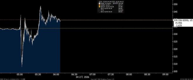 Alphabet收入1138.28亿美元,同比升18%,超预期的1114.3亿美元,纯利344.55亿美元,每股盈利2.82美 元,升31%,超预期的2.63美元。 谷歌母公司Alphabet去年第四季业绩披露,预期2026年的资本开支将达到1750亿至1850亿美元,以捕捉 AI投资与基础设施带动增长的机遇,金额较2025年大增91%-102%。盘后A股股价一度闪跌7.5%至308美 元,之后仅跌0.7%,报332美元。 ...