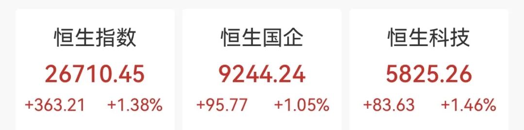【导读】港股三大指数齐收涨,智能驾驶概念股集体大爆发 1月6日,港股三大指数强势,最终齐齐收涨。截至收盘,恒生指数涨1.38%,报26710.45点;恒生科技指数涨1.46%,报5825.26点;国企指数涨1.05%,报 9244.24点。 盘面上,大型科技股普涨,网易涨近3%,快手涨超2%,百度、腾讯、京东涨超1%;保险、券商股走强,招商证券大涨12%,中金公司(601995)、中信 证券等龙头集体上扬;黄金股、贵金属股涨幅居前,招金矿业涨超7%,紫金矿业(601899)、紫金黄金国际涨超4%。 另一方面,半导体股、零售股、化妆品股、烟草概念股等多数走低。 | 名称 | 现价 | 涨跌幅 | | --- | --- | --- | | 阿里巴巴-W | 150.800 | -1.31% | | 9988.HK | | | | 腾讯控股 | 632.500 | 1.28% | | 0700.HK | | | | 小米集团-W | 38.760 | -1.47% | | 1810.HK | | | | 中芯国际 | 75.600 | -1.18% | | 0981.HK | | | | 泡泡玛特 | 199.5 ...