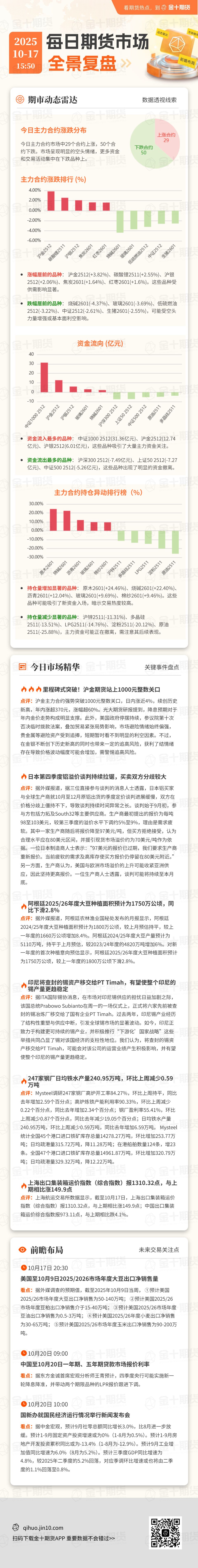 每日期货全景复盘10.17:沪金期货盘中一度突破1000元关口,表现尤为强势!