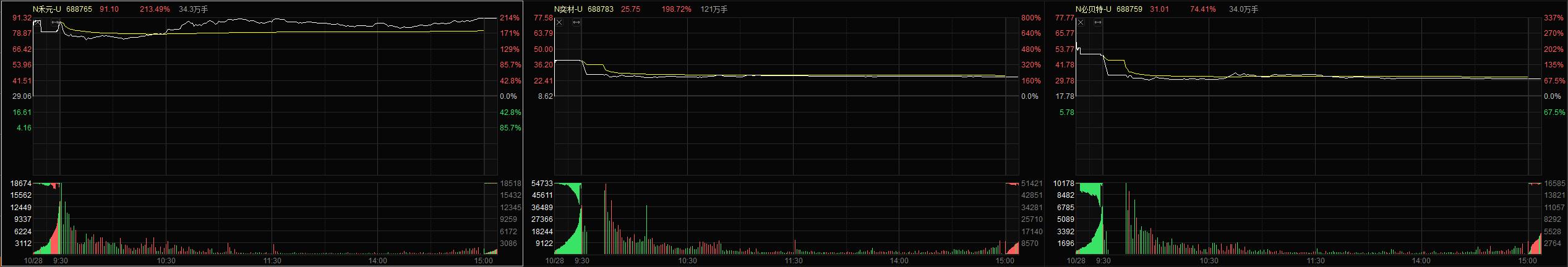 近期上市新股首日融资融券交易明细 | 代码 | 简称 | 上市日期 | 上市首日涨跌 | 上市首日融资余额 | 占流通市值比 | 上市首日融券余额 | | --- | --- | --- | --- | --- | --- | --- | | | | | (%) | (万元) | 例(%) | (万元) | | 688759 | C必贝 特-U | 2025.10.28 | 74.41 | 6090.80 | 4.23 | 0.00 | | 688765 | C禾元 U | 2025.10.28 | 213.49 | 26914.87 | 7.21 | 0.00 | | 688783 | C奕材 U | 2025.10.28 | 198.72 | 25070.06 | 5.91 | 0.00 | | 920020 | 泰凯英 | 2025.10.28 | 188.53 | 1050.08 | 1.22 | 0.00 | | 603175 | C超颖 | 2025.10.24 | 397.60 | 15188.91 | 4.06 | 0.00 | | 001386 | 马可波 罗 | 2025.10.22 | ...