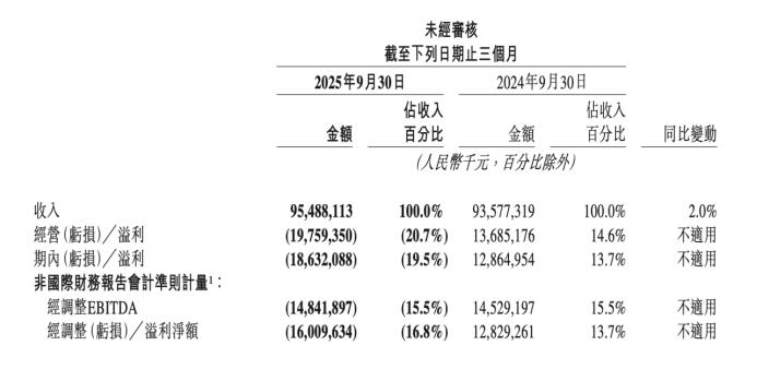 侃见财经 . 看见不一样的财经! 作者:侃见财经 以下文章来源于侃见财经 ,作者侃见财经 来源:侃见财经 核心护城河被侵蚀,对于美团而言,代价难以承受,尽管管理层相对比较乐观。 -------------------------------- 美团的护城河受到了严重侵蚀。 11月28日,美团披露了2025年第三季度业绩报告,财报显示,第三季度美团实现营收955亿元, 同比增长2%,低于彭博预期增长的4%。 经调整净亏损为160.1亿元,高于彭博一致性预期的138 亿。 | | 八元二三十八 | | | | | | --- | --- | --- | --- | --- | --- | | | 截至下列日期止三個月 | | | | | | | 2025年9月30日 | | 2024年9月30日 | | | | | | 佔收入 | | 佔收入 | | | | 金額 | 自分比 | 金額 | 百分比 | 同比筹重 | | | (人民幣千元,百分比除外) | | | | | | 文人 | 95,488,113 | 100.0% | 93,577.319 | 100.0% | 2.09 | | 經營(虧損)/ 溢利 | ...