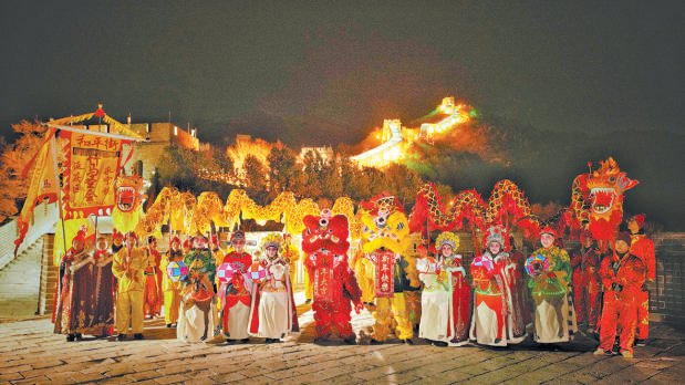 穿行于八达岭长城文化街区,如星的暖光与朱红的灯笼延展开来,激昂的腰鼓表演鼓点如雷,欢腾的秧 歌队彩扇翻飞,旱船表演生动模拟行船之趣,竹马队伍奔腾穿梭,再现古代节庆热闹场景……这些延庆 当地特色花会展演与长城璀璨灯火交相辉映。 八达岭夜长城从除夕至正月初六每晚对外开放。游客可登上南四楼至北四楼段,在静谧的夜色中,欣赏 长城宛如璀璨金龙般蜿蜒于山脊,体验"灯墙同辉,城山共舞"的独特意境。 夜长城开放时间为18时至22时(21时30分清城、22时关灯),文化街区演出时间为18时10分至20时30 分,南线夜间缆车开放(上城单向开放),运营时间为17时30分至19时30分。 岭夜长城向游客开放。 本报记者 潘之望摄 除夕夜,八达 本报讯(记者 李瑶)除夕夜,八达岭夜长城如约与游客见面。暮色四合,千盏灯火沿城墙次第点亮, 宛如金龙苏醒。城下,锣鼓声里,旱船飘逸、竹马奔放、彩龙腾跃,喜庆年味扑面而来。 ...