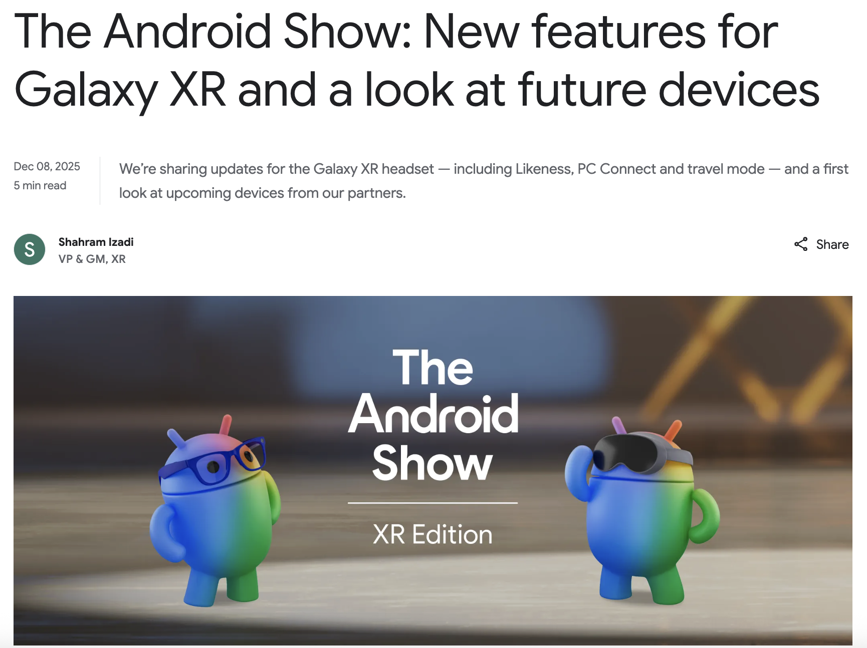 2012 年,Google 推出了「Project Glass」智能眼镜原型机,可以录像,支持语音交互,镜片上一寸不到的 LED 屏幕还能显示一些应用的界面,完 全如同科幻电影走进现实。 最终,这款超前的设备由于隐私争议和技术限制等原因,只度过了短暂的一生,但也让世人瞥见了一种全新的智能设备形态。 13 年后的 2025 年,智能眼镜成为新兴的硬件浪潮,Google 作为这个品类曾经的先行者,带着 Android XR 和 Gemini 又杀了回来。 刚刚的 Android Show 活动只有半个小时,内容却干货满满,Google 正式披露了他们眼中四种 XR 设备路线: XR 头显设备 有线 XR 眼镜 无线 XR 眼镜 AI 眼镜 Android XR:把蛋糕做大 Android XR 这个系统于去年年底首次正式公布,顾名思义就是一个为 XR 设备开发的 Android 系统。 Google 强调,为 Android 开发,就是在为 Android XR 开发,后者可以直接兼容使用 Google PlayStore 上的大部分手机和平板应用。 跟手机上的 Android 一致,Android XR 为行业 ...