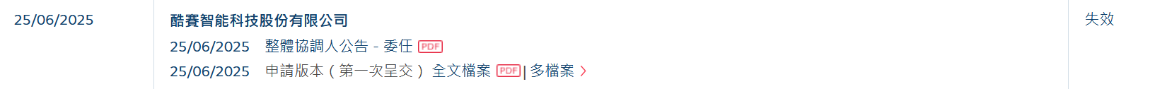 酷赛智能港股IPO招股书失效