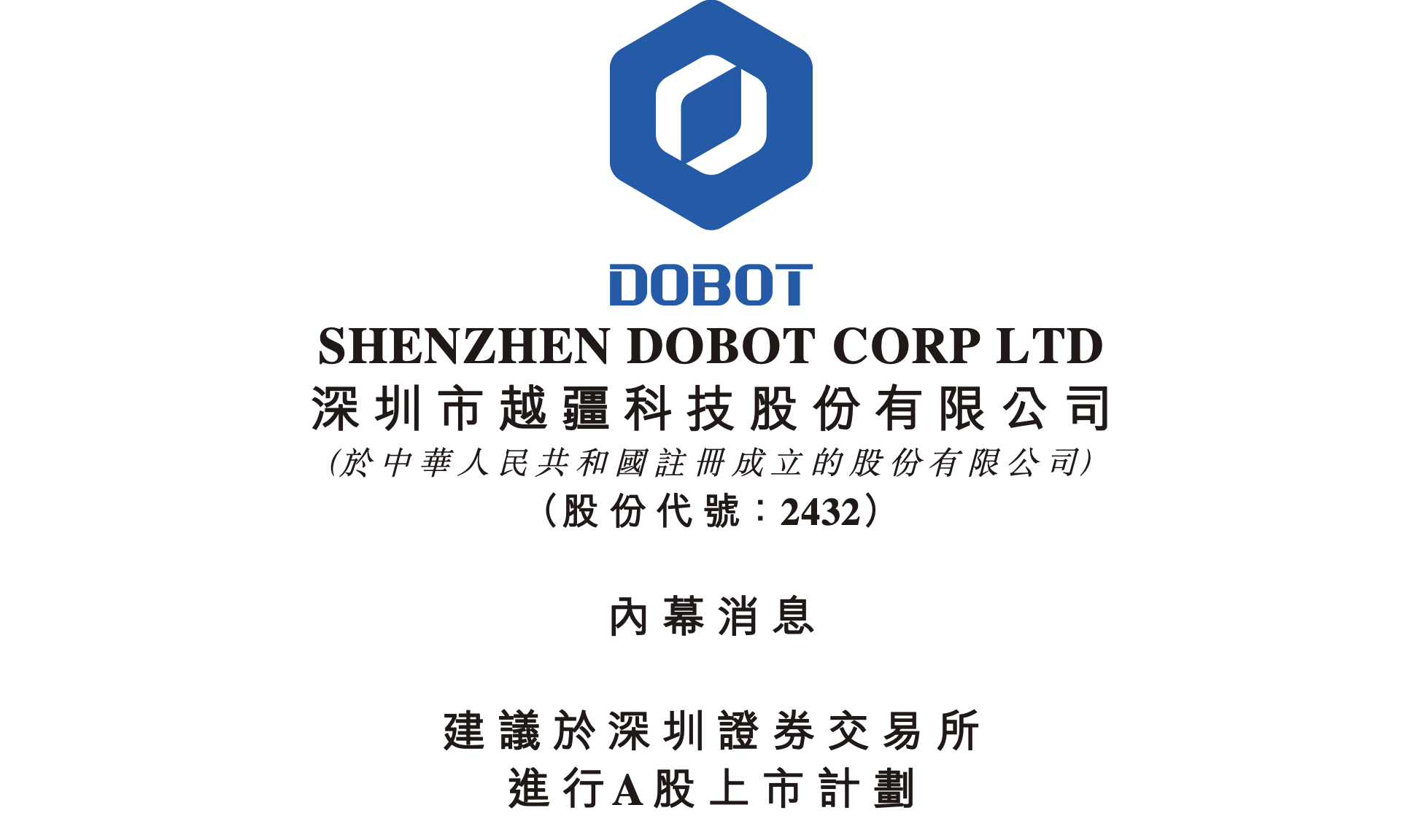 越疆:已决定启动深交所上市计划