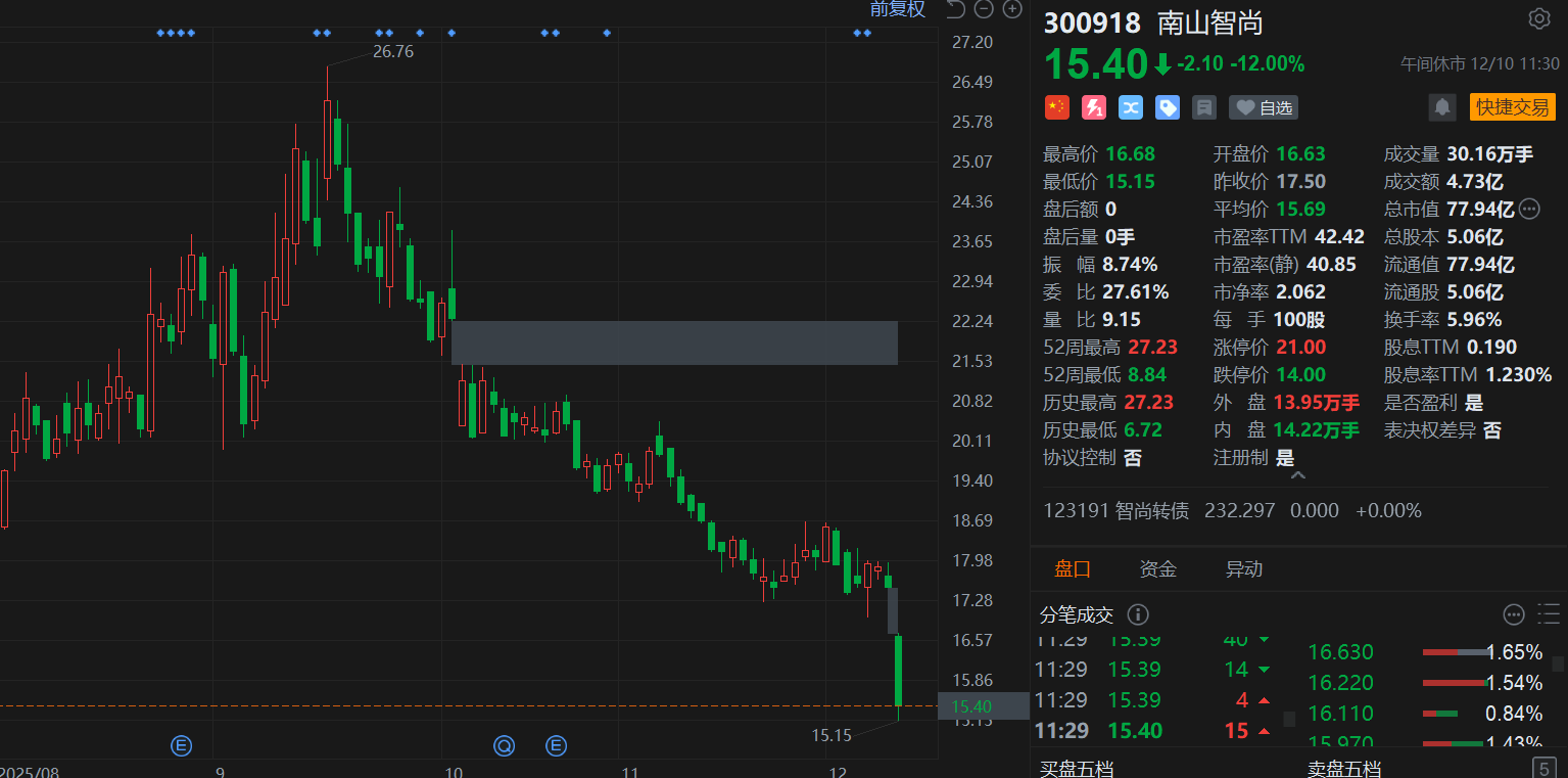 A股异动丨南山智尚大跌12%,超7100万股限售股今日解禁