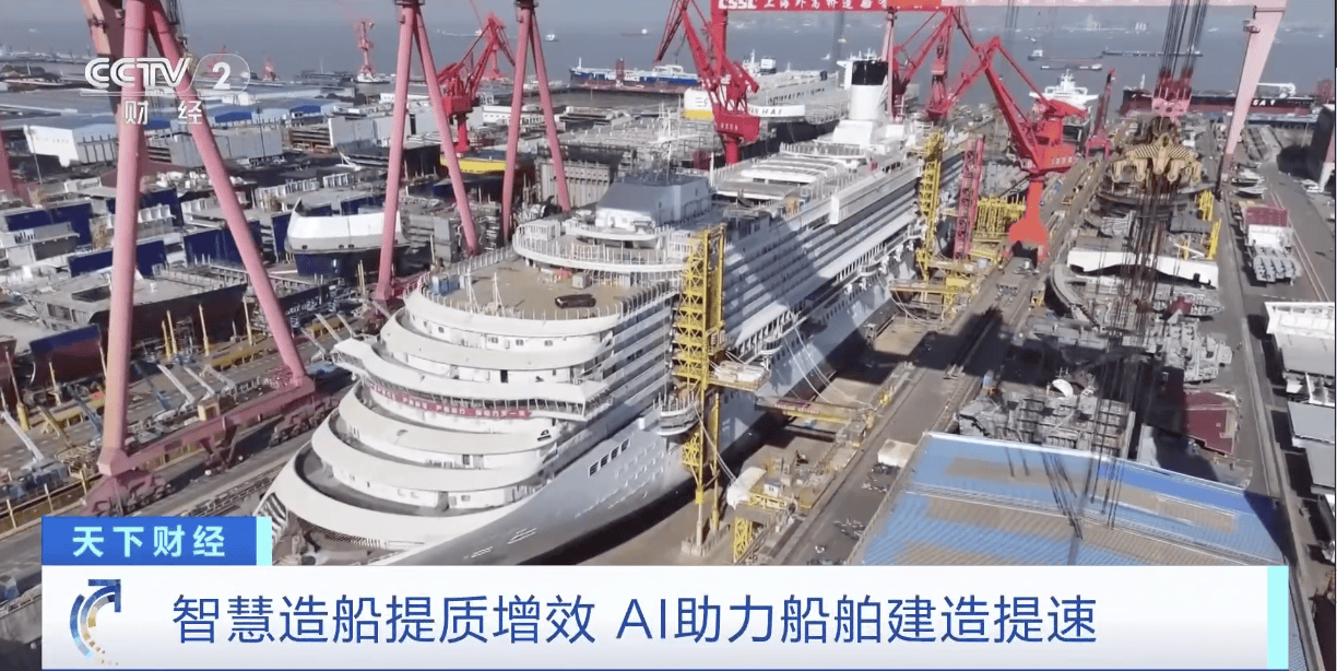 Group 1 - The Chinese shipbuilding industry is leading globally in three key indicators and is accelerating its transformation towards smart manufacturing, integrating new technologies like artificial intelligence into various stages of ship construction [1] - The construction progress of the second domestically produced large cruise ship, "Aida Huacheng," has exceeded 91%, with the construction cycle shortened by nearly 8 months compared to the first ship [3] - AI-driven algorithms are optimizing warehouse logistics, increasing storage space utilization by 200% and improving efficiency of inbound and outbound logistics by 50% [5] Group 2 - AI is autonomously scheduling production plans, resulting in a 25% increase in production capacity compared to traditional methods [7] - The integration of AI into traditional heavy industry is addressing complex manufacturing processes and material management, leading to a comprehensive transformation in shipbuilding [9] - Future developments will see AI streamline all aspects of shipbuilding, from design and procurement to production and logistics, enhancing both quantity and precision in Chinese shipbuilding [9]