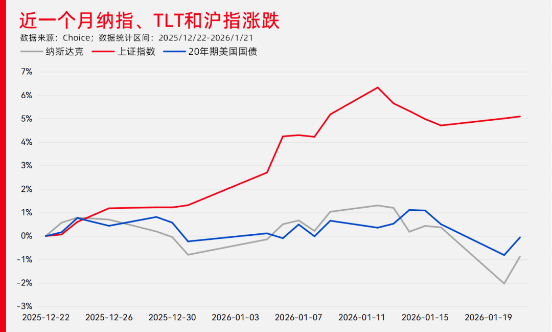 A股最近气势正盛,近两周站稳了4100点,交易额连续14个交易日维持在2.5万亿以上。我之前一些低调的朋友们这几天都开始在朋友圈里晒基金收益了, 收益普遍都在20%以上。 而一些过去喜欢炒美股和美元债基金的朋友,最近在朋友圈里低调了很多。 我抱着吃瓜的心态,比较了一下近期美股、美债和A股涨跌走势。 果不其然,与A股相比,美国资产近期表现实在不太行。 这是否意味着美国资产目前没有配置价值了呢?近期的震荡与回调究竟是大跌先兆,还是布局的黄金坑? 01 美股已至转折点? 我们先来看下美股。 近两天美股波动最主要的原因就是美国与欧洲在格陵兰问题上的分歧。由于欧洲多国声援丹麦对格陵兰的主权,特朗普17日宣称将从2月1日起对丹麦、法 国等8个盟友加征10%关税。市场担忧美欧之间贸易战会危及美国经济。 不过仅仅四天后,特朗普就在达沃斯论坛上声称将暂缓对欧洲盟友加关税,会通过外交路径解决格陵兰问题,完成了一次迅速的TACO(Trump Always Chickens Out)。 特朗普领导下的美国与传统盟友的关系日趋紧张,给美国经济增添不确定性,在特朗普任期内,美股未来肯定还会受这类消息的负面影响。 不过,美股近期也有一些利 ...