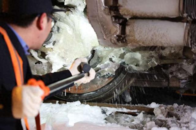 黄有贤 廖炳达 中青报·中青网记者 周呈宣 日前,受寒潮影响,我国大部地区自西北向东南出现降温大风,中东部地区将迎来入冬以来范围最大、 强度最强、冻雨影响最广的雨雪冰冻天气过程。 中国铁路南宁局集团有限公司南宁车辆段组建由平均年龄32岁的青年组成的"扫雪除冰突击队",从南 宁、桂林出发,跨越千里,分赴石家庄、西安、济南、郑州、长沙、贵阳等动车组异地过夜点,为动车 组进行除冰作业,确保次日它们能安全、准点地载着旅客继续上线运行。职工们戏称这项工作为"破冰 行动"。 突击队队 员趴在积雪上清除转向架上的结冰。廖炳达/摄 突击队队 员使用除冰铲清理结冰。廖炳达/摄 1月20日,受冰雪天气的影响,G3478次列车晚点近1个小时驶入郑州东动车所存车线。此时,已是凌晨 0时20分许。 低头往车底看,转向架制动夹钳等设备冻成了一整块,部分结冰已跟钢轨接触。准备多时的"扫雪除冰 突击队"带上除冰棒、除冰铲、橡胶锤等工具,拉开"破冰行动"大幕。为了提高除冰效率,他们分头行 动,下腰、俯身、后仰,不断变换着姿势在车下忙碌着。 "这里温度比市区低3到5度,加上趴在积雪上,体温融化积雪浸湿衣裳,体感温度接近零下15度。""扫 雪除冰 ...