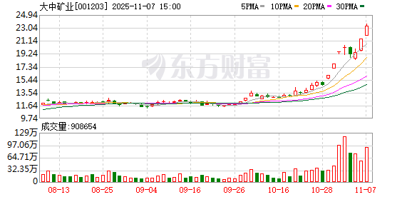 Core Viewpoint - Dazhong Mining (001203) has experienced significant stock price fluctuations, with a cumulative increase of over 20% in the last three trading days, prompting the company to conduct an internal review and confirm no undisclosed significant matters [1][2] Group 1: Stock Performance and Market Reaction - Dazhong Mining announced an abnormal stock trading fluctuation due to a price increase exceeding 20% over three trading days [1] - Following the announcement of obtaining a mining license for the Hunan Jijia Mountain lithium mine, the company's stock price hit the daily limit for three consecutive trading days from October 29 to October 31 [2] Group 2: Mining License and Resource Details - The company’s subsidiary, Chenzhou Chengtai Mining Investment Co., Ltd., obtained a 30-year mining license for the Hunan Jijia Mountain lithium mine, with a lithium resource amounting to 489 million tons, equivalent to approximately 3.2443 million tons of lithium carbonate [2] - The acquisition of the mining license is a key milestone in the company's "Iron + Lithium Dual-Drive" development strategy, expected to enhance overall profitability and sustainable development [2] Group 3: Cost Advantages and Production Techniques - The Hunan lithium project boasts cost advantages through integrated mining and processing, allowing for adjustments in concentrate grade and recovery rates based on market prices [2] - The mining process utilizes a unique sulfuric acid method for lithium extraction, significantly improving lithium recovery rates while also recovering valuable elements like potassium, thus achieving a "one mine, multiple products" strategy [2]