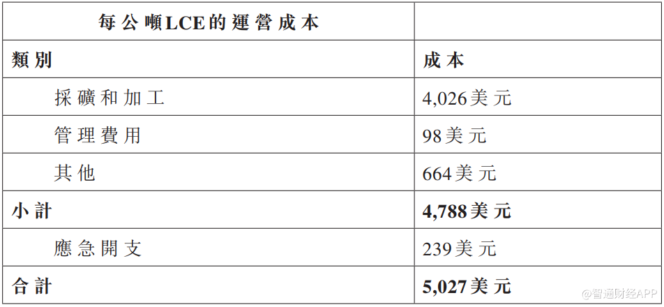 (二)项目一期年产5万吨LCE的平均运营成本: | 項目一 期 毎 公 噸 L CE 運 營 成 本 | | | | --- | --- | --- | | 類 別 | 成 本 | | | 採礦和加工 | 4,228美元 | | | 管理費用 | 154美元 | | | 其他 | 707 美 元 | | | 小 計 | 5,089美元 | | | 應急 開 支 | 254美元 | | | 合計 | 5,344美元 | @智通财经APP | 合并项目采用本公司直接提锂工艺与太阳能蒸发池技术,旨在提高生产效率、减少淡水消耗,并有望提升产品一致性与质量,同时显著 降低生产成本。该项目保留了产品路径的灵活性,可根据包销规格与市场条件定制最终的锂产品。 智通财经APP讯,赣锋锂业(01772)发布公告,关于本公司与Lithium Argentina共同开发合并项目的相关事宜。近日,阿根廷萨尔塔省矿 业和能源秘书处已为合并项目一期颁发了《环境影响评估报告》(DIA),标志着合并项目取得关键进展。合并项目计划于2026年上半年 向阿根廷政府提交大型招商引资制度(Regimen de Incentivo para Grand ...