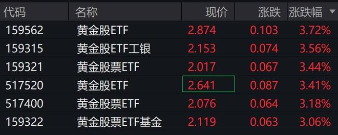 黄金概念股早盘走强,黄金股相关ETF涨超3%