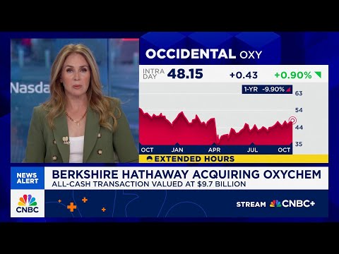 All right, a news alert. It is official. Berkshire Hathway announcing that it is acquiring Accidental's chemical business, Oxymp.This is an allcash deal. That transaction is valued at $9.7% billion. Accidental has been looking for ways to bring down debt.They have current debt load of about $22 billion. They have stated that they'd like to get down to $15 billion. Bergkshire Hathaway is the largest shareholder in Accidental and this is a separate deal where they'll be spending off that Oxy Chem and taking c ...