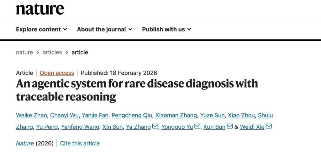 Core Insights - The article highlights the launch of DeepRare, the world's first intelligent rare disease diagnostic system developed by a joint team from Shanghai Jiao Tong University and Xinhua Hospital, addressing the global challenge of difficult diagnosis and high misdiagnosis rates in rare diseases [1][4]. Group 1: System Overview - DeepRare employs an innovative "central-body" architecture, surpassing traditional medical AI by breaking data silos and integrating vast amounts of medical literature and clinical cases for deep knowledge internalization [4]. - The system abandons traditional AI's pattern matching, utilizing a human-like "slow thinking" capability through "hypothesis-verification-self-reflection" to analyze diagnostic clues [4]. - DeepRare provides full-process evidence-based "white-box reasoning," ensuring that each diagnostic conclusion is accompanied by a complete traceable evidence chain, addressing the trust crisis in AI healthcare [4]. Group 2: Performance Metrics - Clinical data validation shows that DeepRare's pure phenotype diagnostic accuracy reached 57.18%, an improvement of 23.79 percentage points over the best international models, changing the paradigm that "without genetic testing, diagnosis is difficult" [4]. - The system's diagnostic recall rate surpasses that of rare disease specialists with ten years of clinical experience [4]. - After incorporating genetic sequencing data, the comprehensive first-diagnosis accuracy for complex cases exceeded 70.61%, significantly outperforming commonly used international tools [4]. - The inference reports generated by the system achieved a 95.40% satisfaction rate among doctors, ensuring that diagnoses are "well-founded" [4].