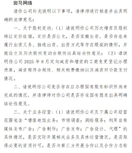 斑马智行IPO前软件著作权许可合同纠纷败诉,被要求支付1555万 来源:新浪港股 220亿独角兽斑马智行拟港交所IPO,3年亏损超26亿元? 近日,斑马网络收到中国证监会关于本次境外上市的备案反馈意见,证监会要求公司补充说明以下事 项,并由律师核查出具明确法律意见,具体反馈如下: 一、关于股权变动:(1)说明公司历次增资及股权转让的定价依据,定价是否公允,是否实缴出资, 是否存在未履行出资义务、抽逃出资、出资方式等存在瑕疵的情形,并就设立及历次股权变动合规性出 具结论性意见;(2)说明公司2025年8月定向减资和增资的工商变更登记办理进展,减资程序合规性、 相关税费缴纳情况以及减资对价款支付情况。 二、说明公司是否存在应办理国有股东标识但尚未完成的情况,并由律师对公司是否存在国有股东出具 明确结论性意见。 三、关于业务经营:(1)说明公司及下属公司经营范围包含"增值电信业务;市场调查;测绘服务;利 用自有媒体发布广告;广告制作;广告发布;广告设计、代理"的具体情况,是否实际开展相关业务及 具体运营情况,是否取得必要的资质许可,是否与第三方开展合作及合作方名称(合作方是否持有资 质)、合作方式,是否涉及《外商投 ...