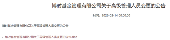 来源:机构之家 2月14日,情人节,街头巷尾开始弥漫起玫瑰与巧克力的甜腻气息,基金圈亦迎来一则人事变动的消 息。零点时分,博时基金发布高级管理人员变更公告,公司副总经理、首席信息官王德英因"岗位调 整"离任,转任公司首席技术专家,董事长张东将代任首席信息官一职。 | 基金管理人名称 | 博时基金管理有限公司 | | --- | --- | | 公告依据 | 《公开募集证券投资基金信息披露管理办法》、《证券基 金经营机构董事、监事、高级管理人员及从业人员监督 | | | 管理办法》 | | 高管变更类型 | 离任基金管理人副总经理、公司首席信息官 | | | 代任基金管理人公司首席信息官 | | 代任高级管理人员职务 | 董事长 | | --- | --- | | 代任高级管理人员姓名 | 张东 | | 是否经中国证监会核准取 | | | 得高管任职资格 | | | 中国证监会核准高管任职 | | | 资格的日期 | | | 任职日期 | 2026年2月 12日 现任博时基金管理有限公司党委书记兼董事长。1989年 | | | 至 1994年在中国银行工作。1994年至2024年在招商银 | | | 行工作,历 ...