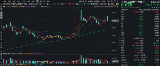 春节假期期间,海外内主要科技厂商展开新一轮Al竟赛。阿里巴巴、字节跳动、智谱等国内厂商纷纷上 线最新的大模型Qwen3-Max-Thinking、豆包2.0、GLM-5等。海外厂商同样紧随其后,谷歌发布Gemini3 DeepThink推理增强版本等。场景下沉不断开拓C端用户,筑牢基础用户生态。 国内AI厂商在春节期间开启"红包大战",腾讯元宝发放10亿元现金红包;千问启动30亿元的"春节请客 计划",以"帮大家点一杯奶茶"迅速出圈;字节跳动通过春晚送出超过10万份科技好礼等。 国联民生证券表示,持续看好AI投资机会,从四维度验证行业高景气:①科技巨头资本开支增长; ②AI助手Clawdbot验证AI从对话工具向执行者转型,边缘AI产品前景广阔;③算力基础设施供需紧张 持续,推动上游通胀,云厂涨价、H100租赁价格上行,存储板块或延续涨价态势;④AI已进入应用落 地、需求加速与产业链景气共振阶段,全面看多AI产业趋势。 盘面上,春节后第一个交易日(2月24日),重点布局国产AI产业链的科创人工智能ETF(589520)或 由于海外AI行情扰动,意外下跌,场内价格一度下探3.8%,现跌3.14%,场内频现溢价交 ...