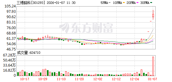 1月7日,三博脑科(301293.SZ)断板,早盘涨幅一度收窄近2%,随后强势拉升,维持震荡走势,截至 午间收盘,报94.57元/股,涨11.34%,成交额为57.3亿元,总市值为195亿元。 消息面上,1月6日晚,三博脑科发布异动公告,称公司目前不涉及脑机接口产品的研发、生产及销售, 神经调控技术带来的收入占公司营业收入比重很小,对公司业绩基本没有影响。 此前,受脑机接口设备量产等消息刺激,脑机接口板块掀起涨停潮。作为脑机接口概念股,三博脑科在 1月5日、1月6日均收获20cm涨停。期间,21财经《辟谣财知道》注意到,有网络帖文称其为"国内唯一 获批脑机接口临床植入许可的民营医院集团,累计完成300例脑机手术",相关帖文被AI抓取到券商软件 的个股涨停分析后广泛传播。 对此,21财经·南财快讯记者以投资者身份致电三博脑科,接线工作人员回应称,已关注到相关帖文, 对于"国内唯一获批脑机接口临床植入许可的民营医院集团"这一说法,"据我这边了解应该不是,这些 信息应该是好多个东西杂糅在一起的";而对于"完成300例脑机手术",该工作人员澄清,"这个是假消 息"。 值得注意的是,前述澄清并不意味着三博脑科就脱离了脑 ...