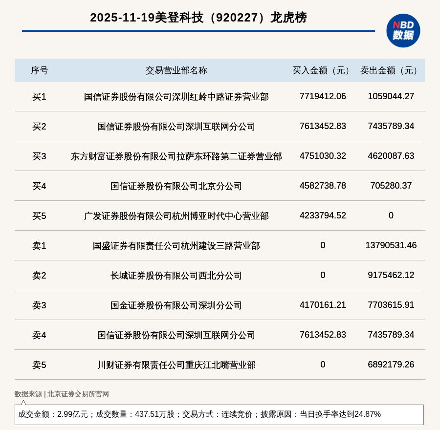 北交所上市公司美登科技登龙虎榜:当日换手率达到24.87%