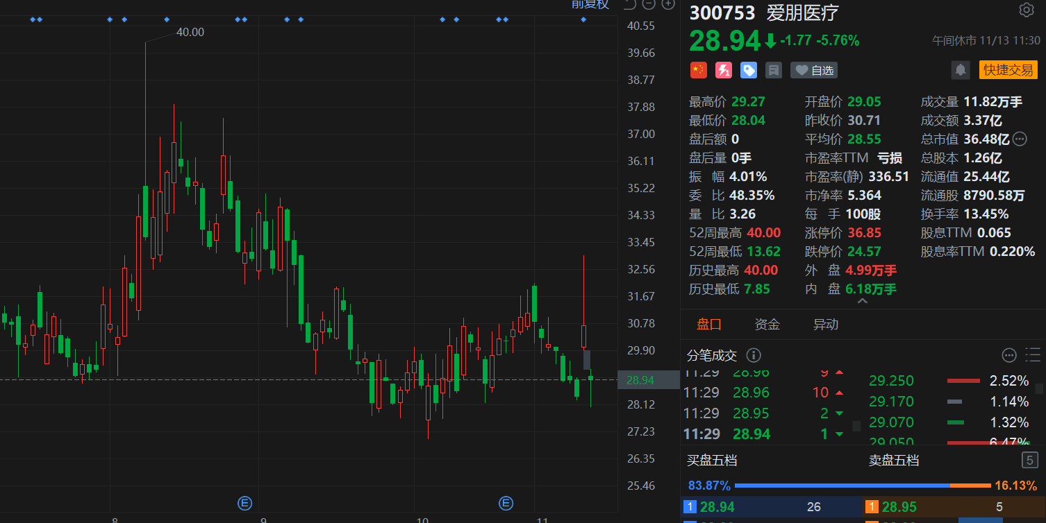 A股异动丨股东拟减持,爱朋医疗午间收跌近6%,昨日盘中曾飙涨超16%