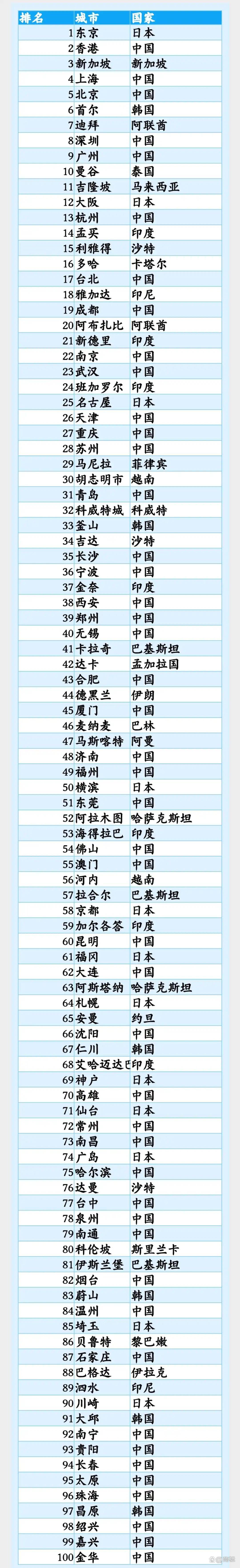 我国47个城市跻身亚洲最具价值100强:上海第4,杭州第13,南京略胜武汉!