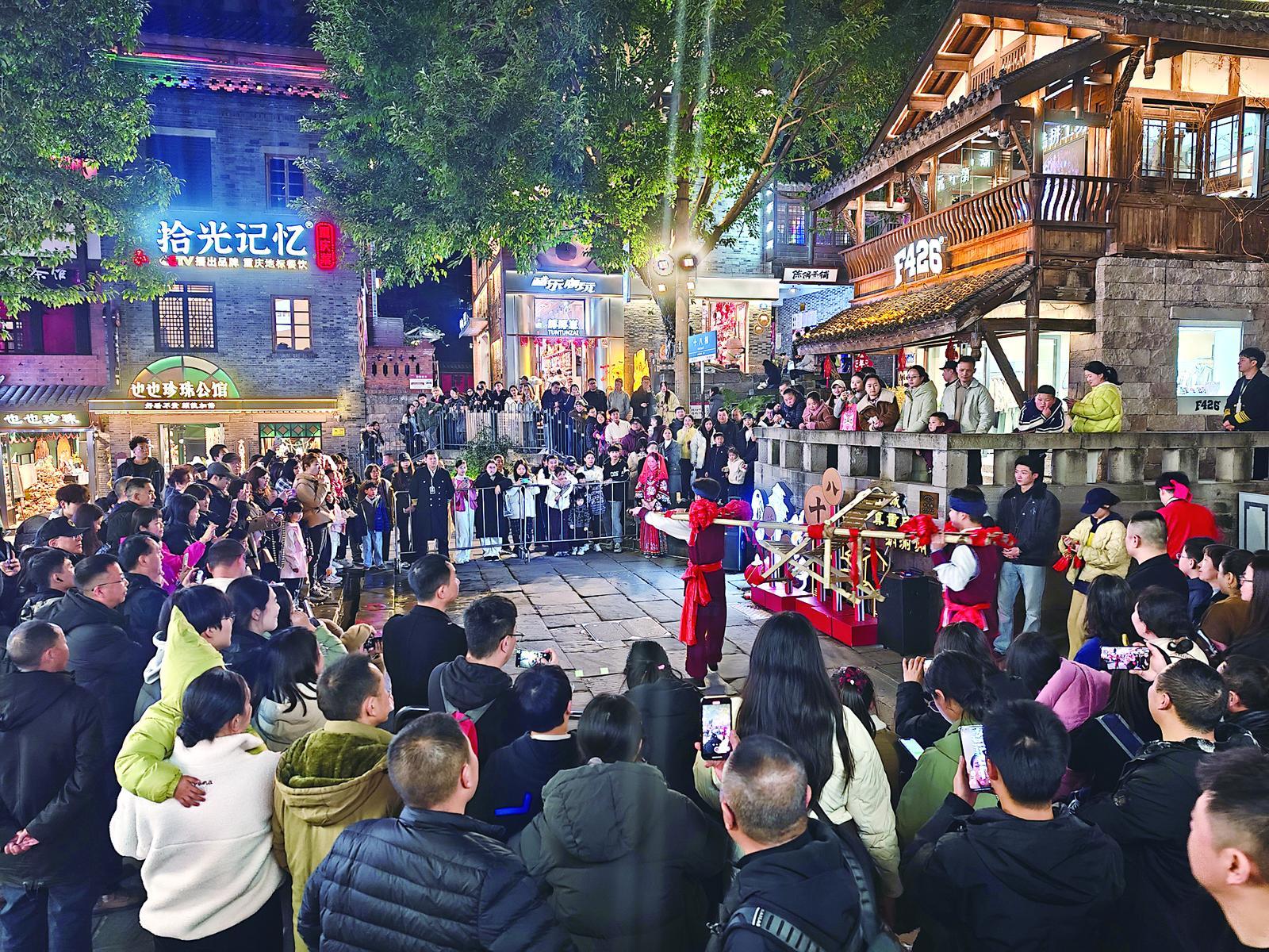 据介绍,《话说十八梯》按四季划分四大篇章——"江湖千载""红色铸魂""街坊暖情""烟火盛宴"。这种划分不仅让演出内容随时间流转而更迭,也更贴合重 庆人真实的生活节律与情感脉络。目前上演的第一篇章"江湖千载",聚焦这片土地上的侠义精神与人文故事,让江湖不再只是传说,而是可听、可看、可参 与的现实场景。 演艺内容分为说书人表演、互动巡游、IP景点沉浸式表演三大板块。说书人扎根于重庆本土的"摆龙门阵"传统,将十八梯的历史娓娓道来;互动巡游中,演 员与游客自然交融,重现老重庆的市井场景;散落在各处的点位表演,则让建筑、石阶、老井都成为叙事的一部分。 尤为动人的是"抬滑竿"这样的互动环节。当游客亲自抬起滑竿,或坐在滑竿上穿过人群时,他们不再是体验一种民俗,更是在身体力行中触摸一段生活史。 正如一位外地游客所说:"这让我们穿越回老重庆,感受到真正的市井生活。" 在重庆,有一条梯坎,连接着这座城市的"上半城"与"下半城",也串联起数百年的烟火记忆——它就是十八梯。春节临近,由重庆文旅集团推出的文化IP 剧"话说十八梯",受到众多游客追捧。 上游财经-重庆晨报记者 杨圣泉 摄影报道 重庆文旅集团有关负责人介绍,演出于2月1日 ...