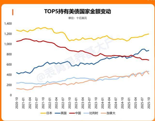 美国国债这么香,为何中国却一次次地"砍仓"? 大家都在买,中国却逆势而为,在2025年11月大笔抛售61亿美元美债,持仓掉到了6826亿美元,刷新2008年以来新低。这不是心血来潮,这是深思熟虑后的 战略重塑。 不是中国不爱赚利息,而是这游戏规则已经不一样了。 中国减持不是市场跟风,是战略方向。从2022年4月开始,中国就主动把美债的占比压低到1万亿美元以下,到今天这已经是持续三年的资产结构调整趋势。 可以明确一点,中国的这次动作,不是情绪化的甩锅,更不是对美国市场短期看空,这是一盘全局战略下的大棋。 同期美债整体市场并没有被"砸盘"。相反包括日本、英国、比利时、沙特和加拿大在内的多国在2025年11月都选择了加仓。 其中仅日本就新增26亿美元,总持仓再回1.2万亿美元高位。就连英国也在当月增持了106亿美元。 这就清楚了,中国不是跟风,而是清醒。我们看的早、动得准,眼光不是盯着短期收益,而是放在国家资产安全和对冲风险的长期策略上。 黄金是中国跑出美元体系的"撤退路线"。 可中国抛了美债之后,这些钱去哪了?答案藏在黄金。就在美债持仓创新低的同时,中国央行手里的黄金储备已经悄悄涨到了7415万盎司,而且是已经连 ...